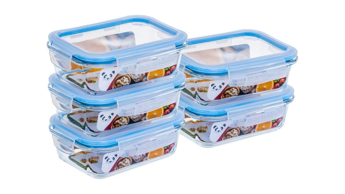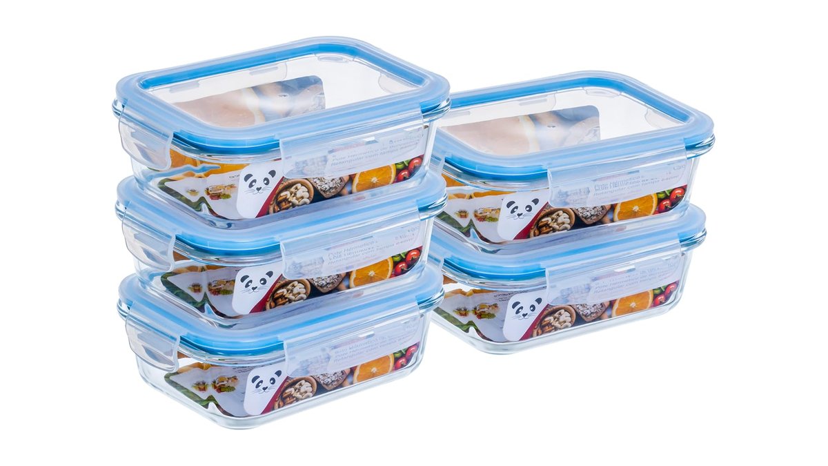 1. Gato Panda KIT 5 Potes de Vidro Retangular com Tampa Hermética – Escolha do Editor