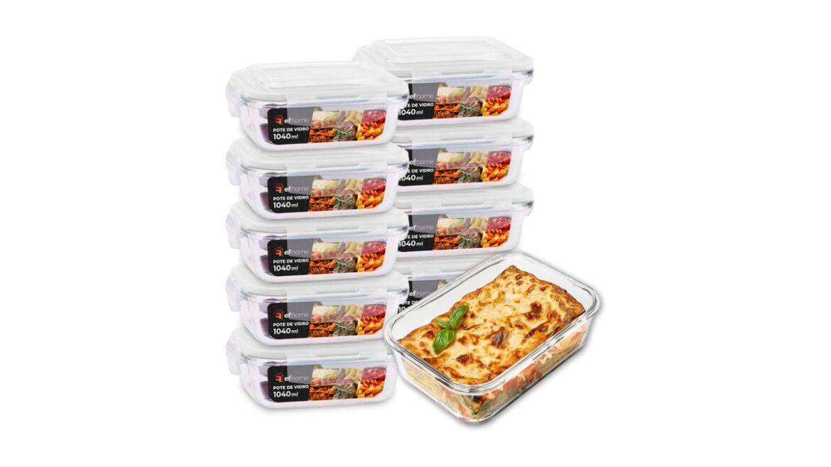 1. KIT 10 Potes de Vidro Retangular com Tampa Hermética 1040ml — Escolha do Editor