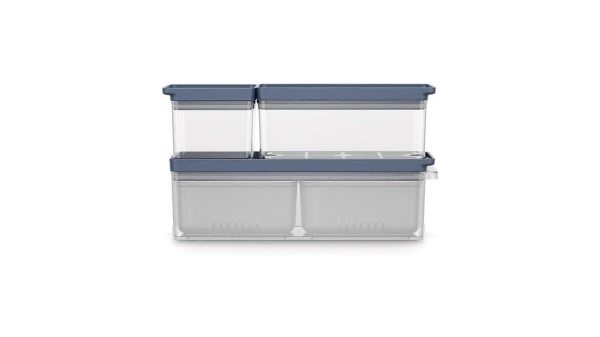 A primeira coisa que chama a atenção no Kit Electrol é o seu design modular. Os três potes, de tamanhos variados mas complementares, são desenhados para se encaixarem perfeitamente, permitindo um empilhamento seguro e estável. Isso é particularmente importante para quem tem geladeiras menores ou busca aproveitar cada centímetro cúbico do espaço interno.