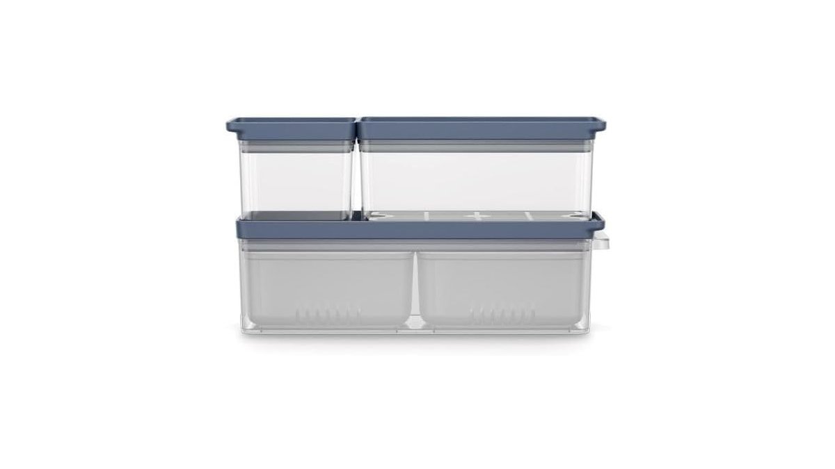 ✅ Design modular e empilhável que maximiza o espaço da geladeira.❌ A limpeza do anel de silicone requer atenção extra ocasionalmente.
